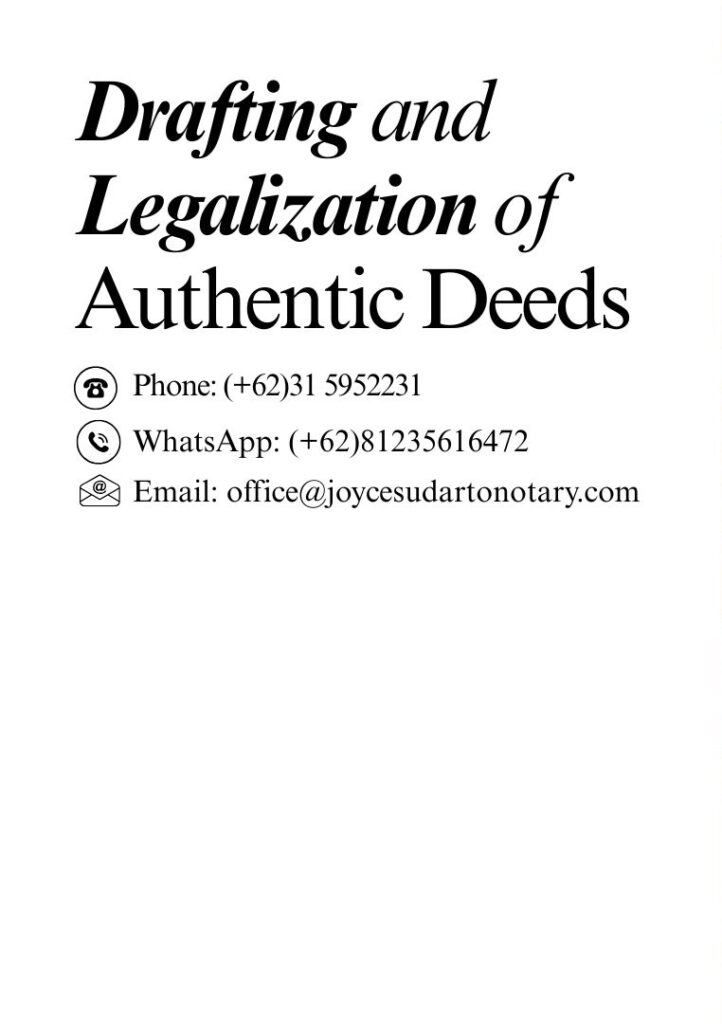 Our notary office offers comprehensive services for the drafting and legalization of authentic deeds, ensuring that all legal documents are valid, enforceable, and compliant with applicable regulations. We handle a wide array of documents, including deeds of sale and purchase, loan agreements or debt acknowledgements, lease or rental agreements, powers of attorney, wills and inheritance deeds, prenuptial agreements, and gift deeds.